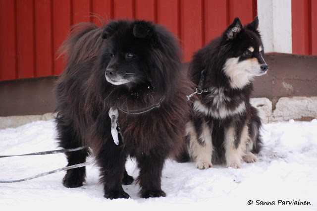 Kenenkään ei kuitenkaan otsikosta huolmatta tarvitse säikähtää, että meille olisi vakinaiseen muonavahvuuden tullut lisäystä, varsinkin kun meidän kolme koiraa tuntuu tarkoittavan monelle jo suunnilleen "melekosta kenneliä"! ;) Nyt kohta viikon verran on tässä meillä hoitopoikana elellyt nimittäin naapurin lapinkoirauros Ransu (Hiekkaniemen Utelias), joka meille onkin hyvin tuttu poika koko 12-vuotisen elämänsä ajalta. Nykyään kyllä hieman jo rauhoittuneempi tapaus, kuin se riiviömäinen terävähampainen musta karvapallo. ^^ Varsin hauska ja persoonallinen tapaus edelleen. :) Nopeasti on viikko vierähtänyt ja huomenna Ransun omien ihmisten pitäisi jo palailla reissultaan.